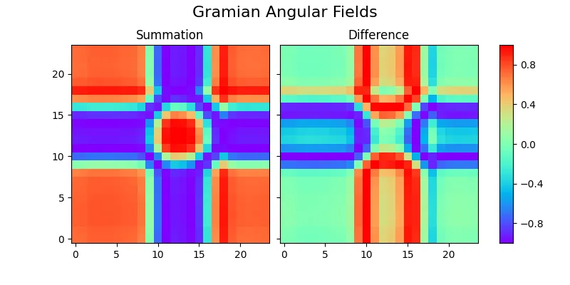 - Gram Matrix: 각 시점 간의 시간적 상관관계를 극좌표를 기반으로 표현하는 알고리즘 ($G = X^TX$)