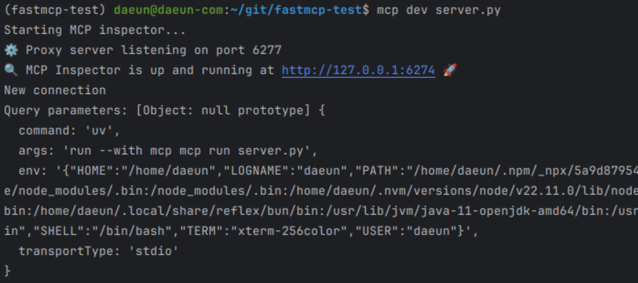 - 개발모드로 MCP 서버를 실행하려면 다음 명령어 사용